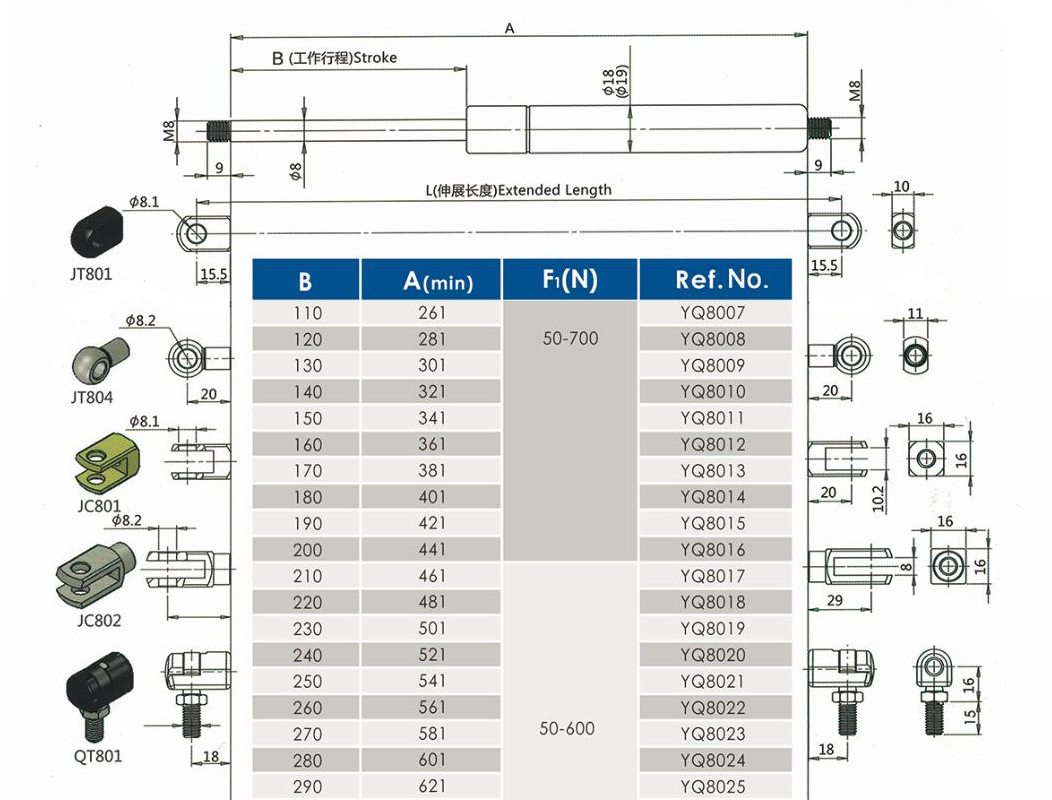 汽車氣彈簧-舉升氣彈簧YQ8/18-2