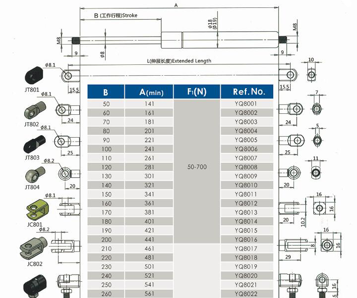 注:由于氣彈簧是非標準的,以上僅為型號的一部分。我們可以根據客戶的要求定制。
