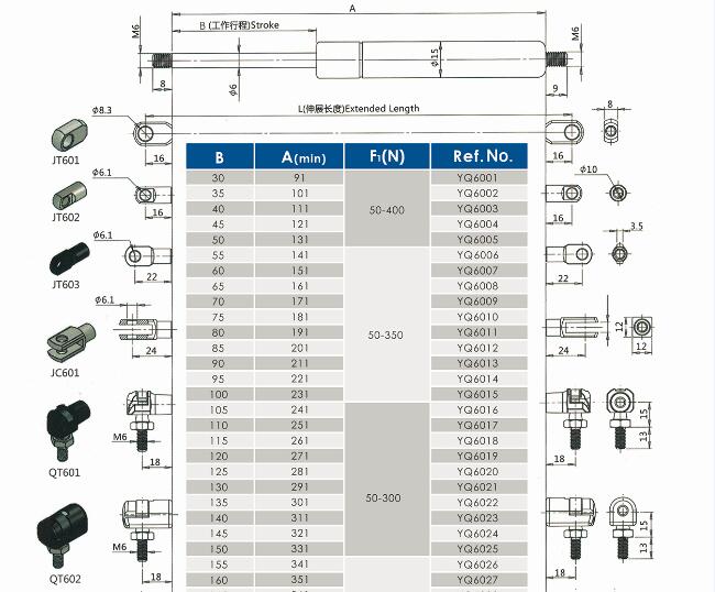 注:由于氣彈簧是非標準的,以上僅為型號的一部分。我們可以根據客戶的要求定制。